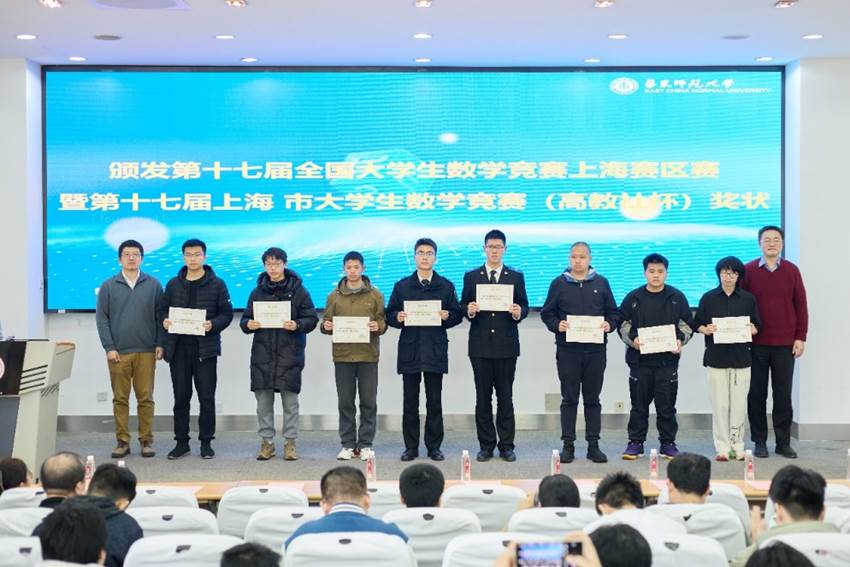 2026年3月22日,第十七届全国大学生数学竞赛上海赛区赛暨第十七届“高教社杯”上海市大学生数学竞赛颁奖典礼在华东师范大学举行。这场数学界的青春盛会由上海市数学会主办,华东师范大学承办,上海理工大学、上海师范大学、上海对外经贸大学和上海电力大学协办,来自上海35所高校的师生代表共同参加。颁奖典礼由抖阴 副院长、数学竞赛上海赛区负责人程涛教授主持。