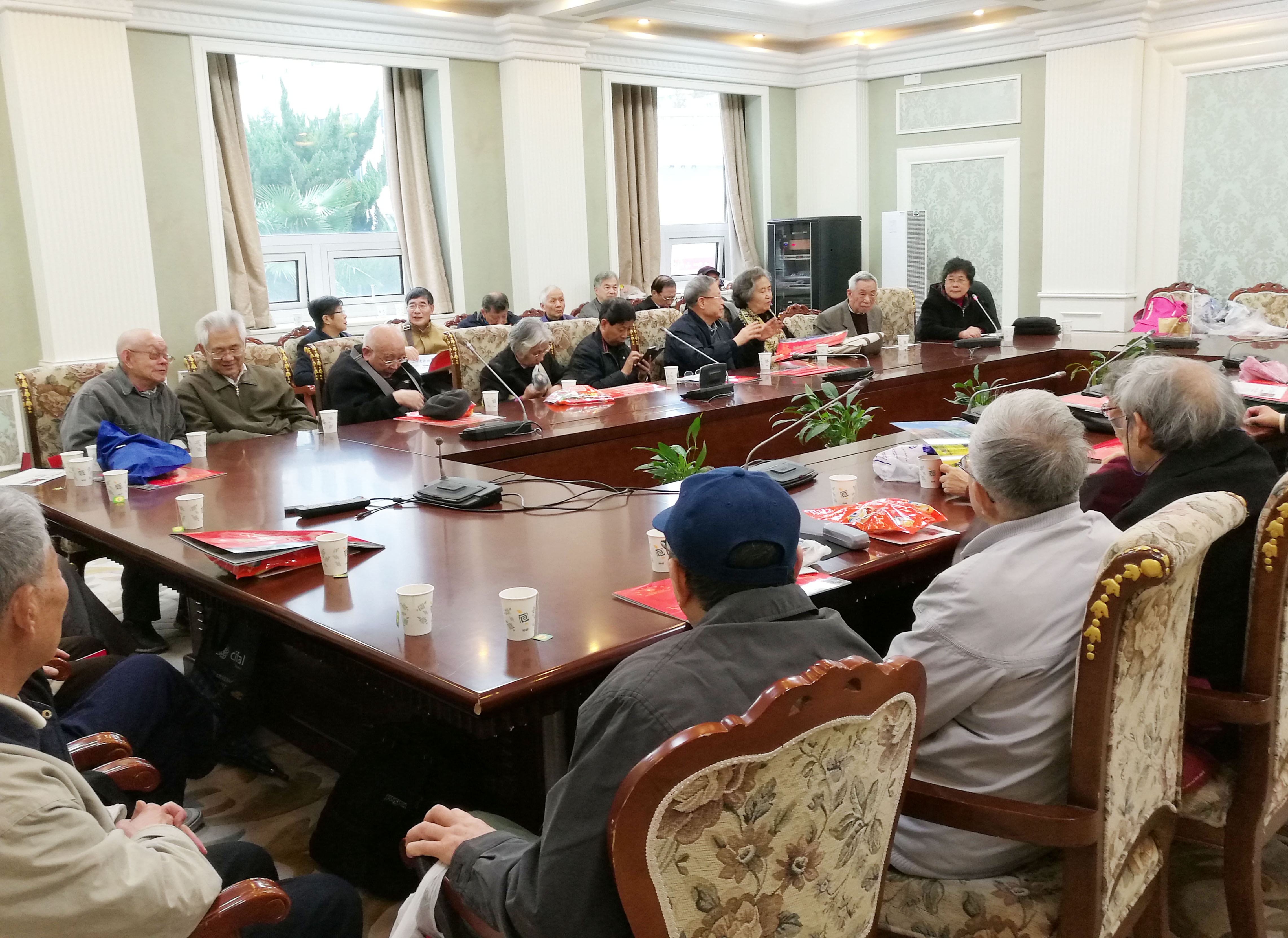 华东师范大学老教授协会数学分会与数学学院退休支部于2018年12月6日假座华东师大出版社二楼会议室举行迎新茶话会,40余位老师出席。学院党委余富团副书记到会,代表学院党政向退休老同志致以新年祝贺,并介绍了学院的发展近况。