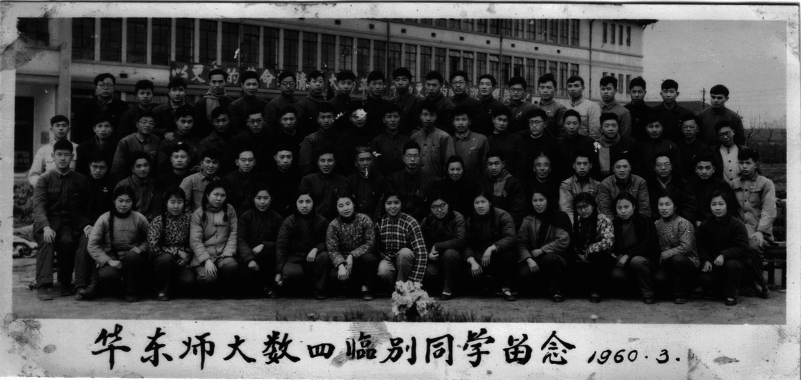 我们1960届未拍系的毕业照(全校的毕业照是在文史楼前大草坪由旋转相机拍摄,校史应存),但当年3月因部分同学提前毕业去北京部队,4,5两班同学与年级老师有合影。 中坐的有陈伩漪、郑啟明、徐振寰、余元希、张奠宙、李汉佩、董纯飞、鲍修德等老师。其中留校后长期在校工作的有前排左一陈月珍、右一胡之琤、二排左二杨庆中、三排右三毛羽辉、四排左一袁震东、 左六徐钧涛、左十阮荣耀。(见上图,点击后可见更清晰大图)
