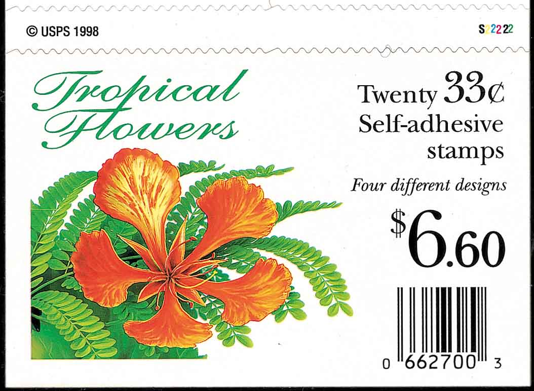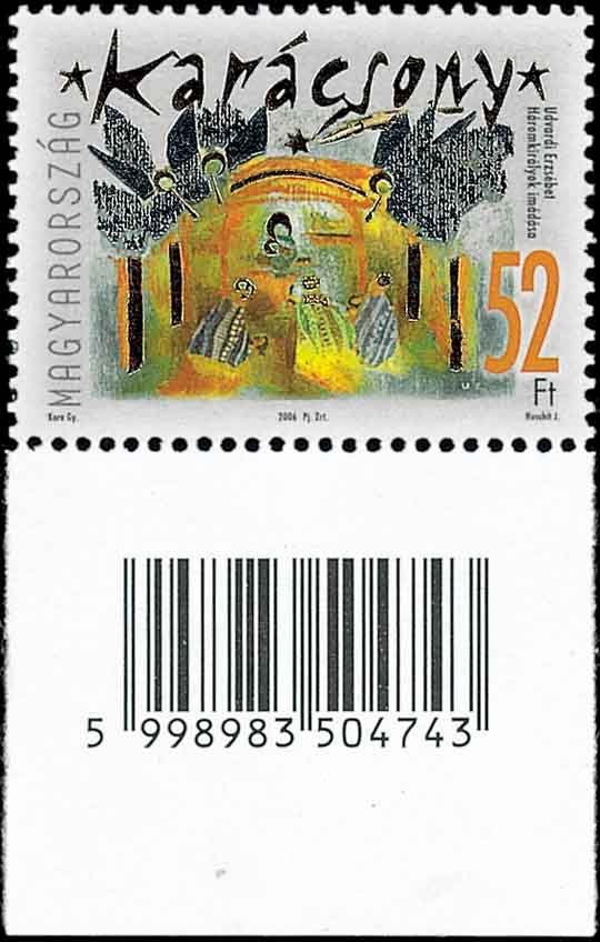 有些国家(地区)邮政当局把条形码印在邮票边纸上,或者在小本票封面上。如图3(匈牙利,2006)和图4(美国,1998)。这些都方便于邮品的销售、结账、存档等业务。
