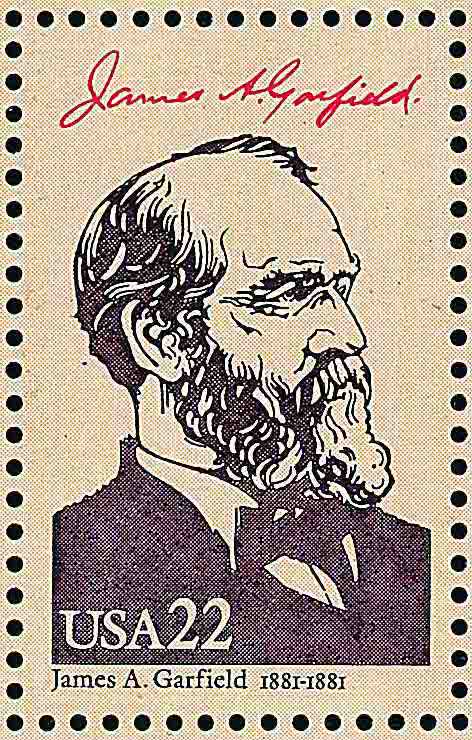 至今, 在世界上关于勾股定理的证明已有三、五百种, 其中有著名数学家, 也有普通的数学爱好者, 还有一些著名人物, 如画家达·芬奇 (1452 -- 1519, 图 7 是 1981 年塞浦路斯发行的纪念达·芬奇邮票) 和以后当上美国第 20 任总统 的詹姆斯·加菲尔德 (1831 -- 1881). 1876 年, 加菲尔德在《新英格兰教育日志》上发表了他对勾股定理的证明, 目前八年级数学教科书上把它作为练习题, 图 8 是 1986 年美国发行的纪念加菲尔德邮票.