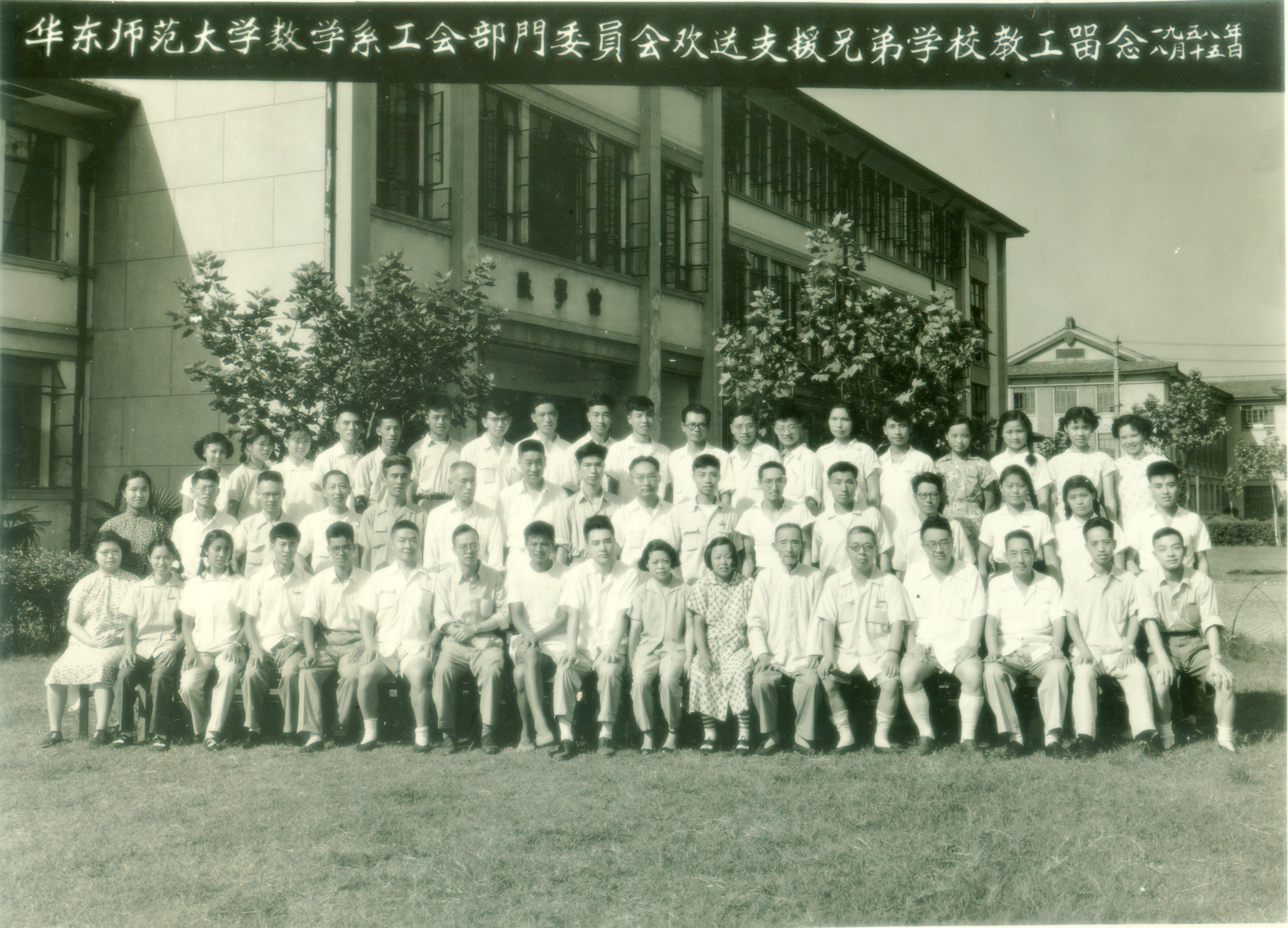 这是1958年暑期里,为欢送数学系支援其他学校十几位教师时,全系教工(有个别老师因故没有参加)合影。可以说是当时数学系的全家福。被支援出去的老师都坐在第一排。 (点击照片能显示更清晰的图形)